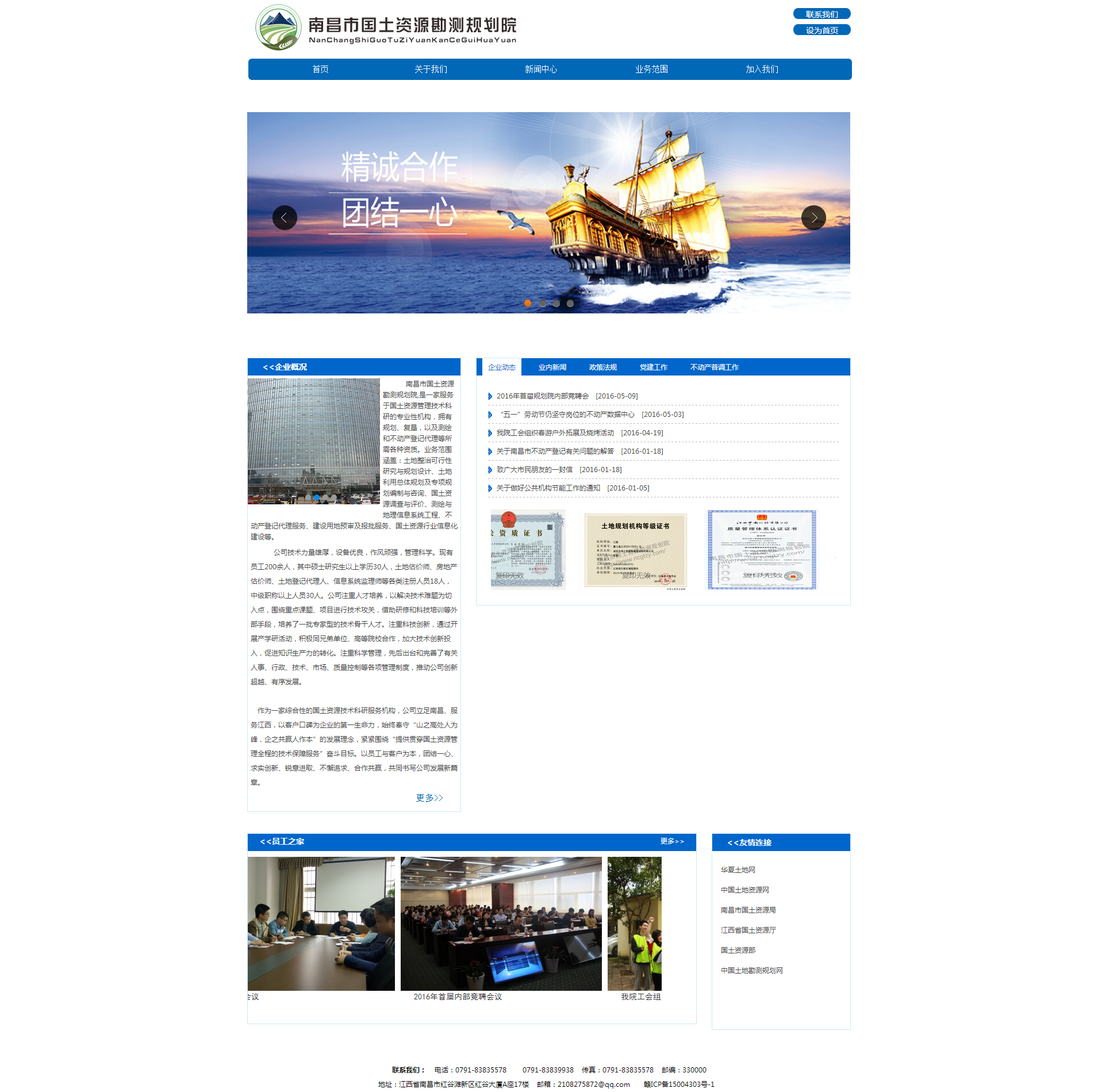 南昌市国土资源勘测规划院成立于2014年11月,是一家具有独立法人资格的企业,服务于国土资源管理技术科研的专业性机构,拥有规划、复垦,以及测量和不动产登记代理等所需各种资质。业务范围涵盖:土地整治可行性研究和规划设计、土地利用总体规划及专项规划编制与咨询、国土资源调查与评价、测绘与地理信息系统工程、不动产登记代理服务、建设用地预审及报批服务、国土资源行业信息化建设等。 我院技术力量雄厚,设备优良,作风顽强,管理科学。现有员工150人,其中博士学历及硕士研究生20人,土地估价师、房地产估价师、土地登记代理人、信息系统监理师等各类注册人员18人,中级职称以上人员12人。我院注重人才培养,以解决技术难题为切入点,围绕重点课题、项目进行技术攻关,借助研修和科技培训等外部手段,培养了一批专家型技术骨干人才。注重科技创新,通过开展产学研活动,积极同兄弟单位、高等院校合作,加大技术创新投入,促进知识生产力的转化。注重科学管理,先后出台和完善了有关人事、行政、技术、市场、质量控制等各项管理制度,推动公司创新超越、有序发展。 作为一家综合性的国土资源技术科研服务机构,我院立足