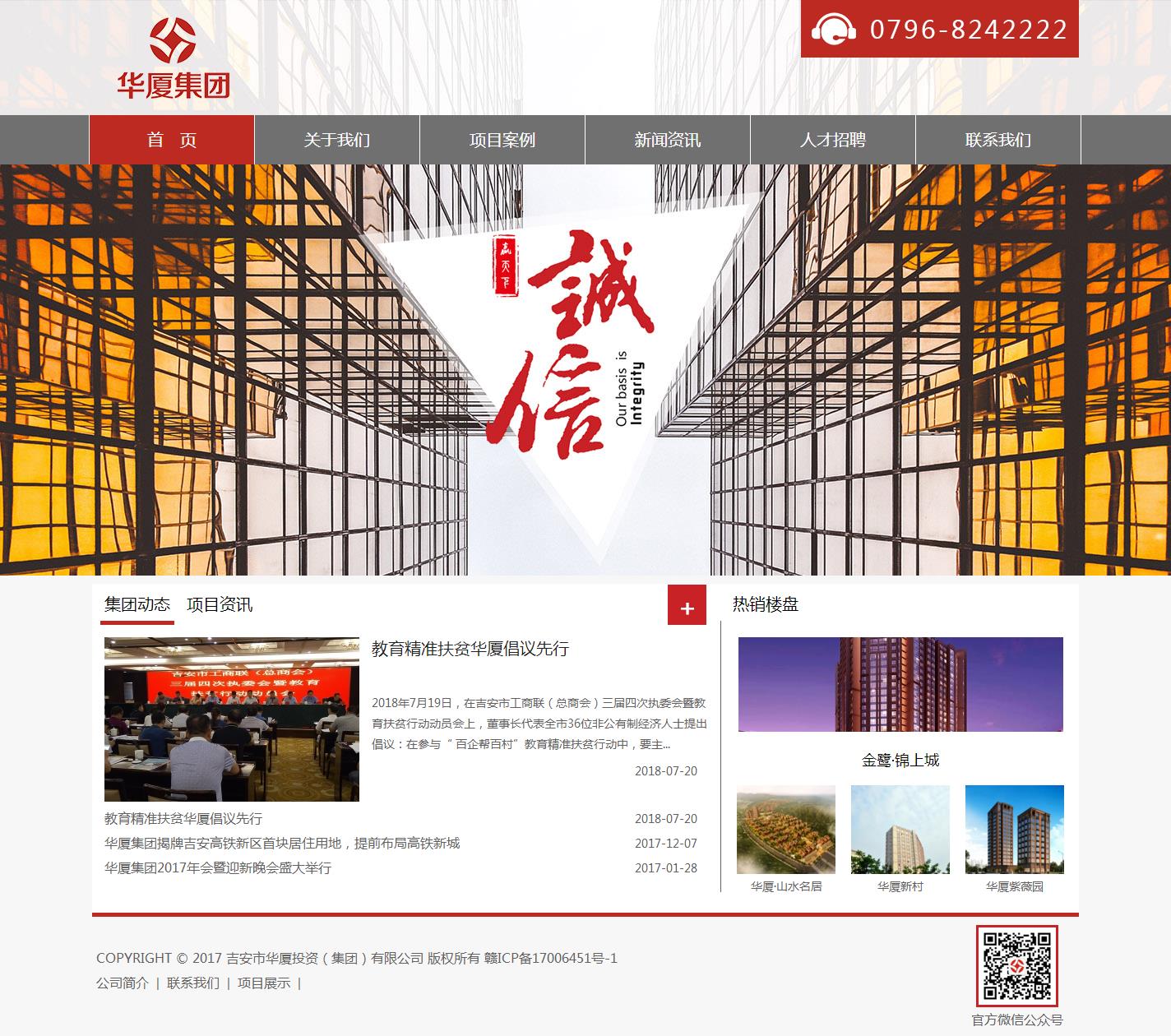 吉安市华厦投资(集团)有限公司是一家具备国家房地产开发二级资质企业,并在市政工程开发投资、水利水电开发投资、企业经营投资等领域向多元化方向发展,按产业多元化布局成立的吉安市恒通工程有限责任公司、吉林省辽源市华厦房地产开发有限公司、安福观山水电有限公司、华厦物业服务有限公司三家企业,总注册资本7000余万元。 华厦投资是董事长罗邦平于2005年创办的,已拥有自建的华厦办公大楼;成功开发“华厦豪景苑”、“华厦新村”、“华厦商务中心”、“华厦江岸星城”、“华厦金水湾”、“华厦紫薇园”、“锦上城”、“华厦山水名居”等房地产开发项目,见证了华厦投资的骄人成长历程。 公司坚持以“求真、务实、创新、诚信”的理念,力求企业稳健发展,同时,企业在承担社会责任方面做出了积极的贡献。董事长创办企业多年来,社会、经济效益贡献突出,累计上缴各项税金超亿元,在参与抗击非典、希望工程、资助贫困大学生、中心城区绿化、新农村建设、地震赈灾、冰雪灾害援助等社会公益事业中,累计捐款达300余万元。 正是以人为本的科学发展核心思想,引领企业不断的向前发展,为企业自身创造价值、为城市建设添砖加瓦、为弱势