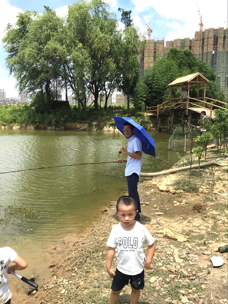 公司组织去乡下钓鱼,活动成功的将大家都晒黑了,